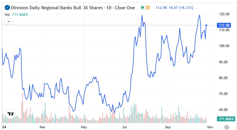 Regional Banking Boom Shines Spotlight On Direxion’s 3X DPST Fund – M&T Bank (NYSE:MTB), Direxion Daily Regional Banks Bull 3X Shares (ARCA:DPST) November 2, 2024 by Alex Freidmen … Read more