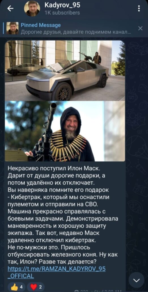 Russian President’s Ally Ramzan Kadyrov Says Elon Musk Remotely Turned Off His Cybertruck In Russia September 21, 2024 by Alex Freidmen … Read more